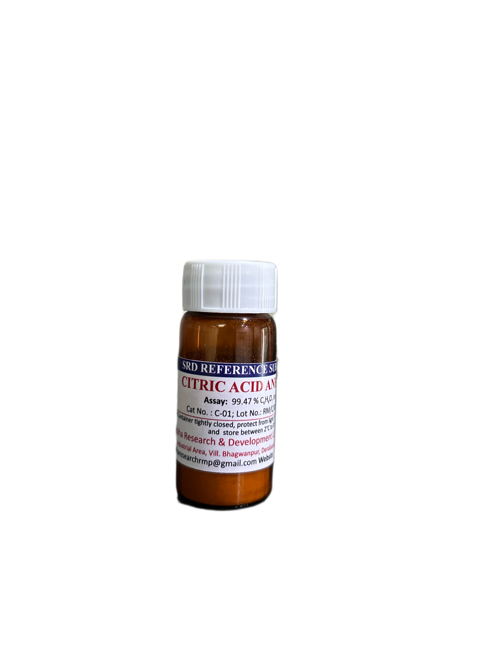 Citric Acid Anhydrous Primary Reference Standard is an ISO 17034 Reference Material intended for analytical calibration, assay standardization, and method validation in pharmaceutical laboratories. The material is fully characterized and supplied with a batch-specific Certificate of Analysis (COA) including certified value and measurement uncertainty. Suitable for use in acid–base titration, HPLC analysis, and other validated analytical methods.
